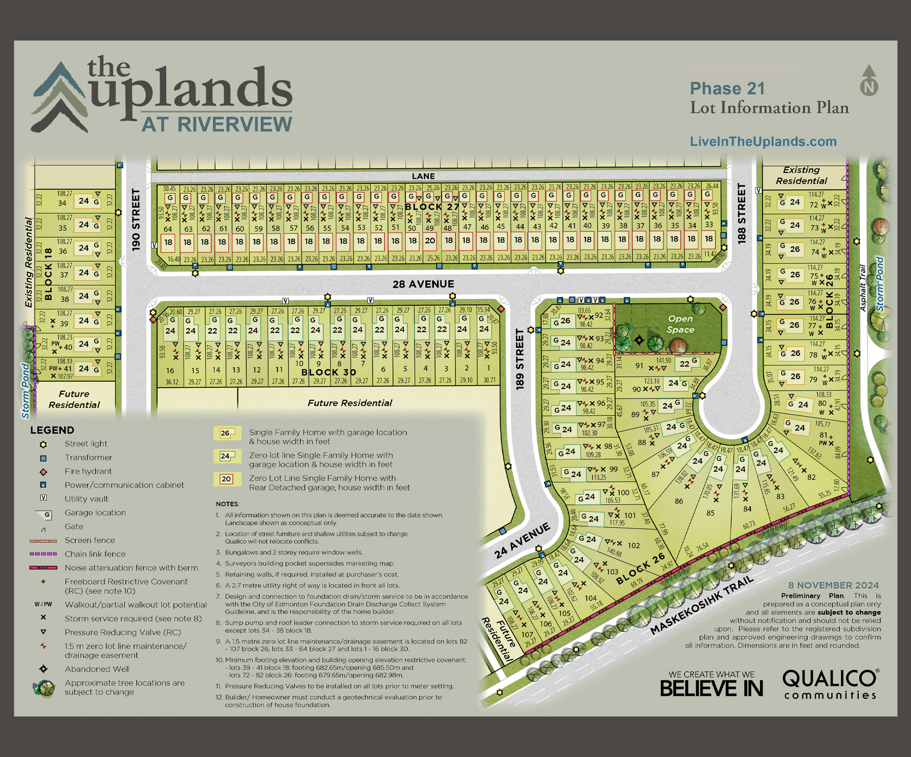 Resting above the North Saskatchewan River in west Edmonton is the new community of the Uplands at Riverview. With close access to modern amenities and breathtaking nature, you will find that the Uplands at Riverview has everything you and your family could need. The community is right next to the Currents of Windermere for any shopping and dining needs and is tucked beside the Edmonton River Valley and Wedgewood Creek with several walking trails and golf courses! As well as plenty of schools from all grades so you and your family have choice. Uplands at Riverview offers a variety of home options and you’ll find the community truly is an experience.