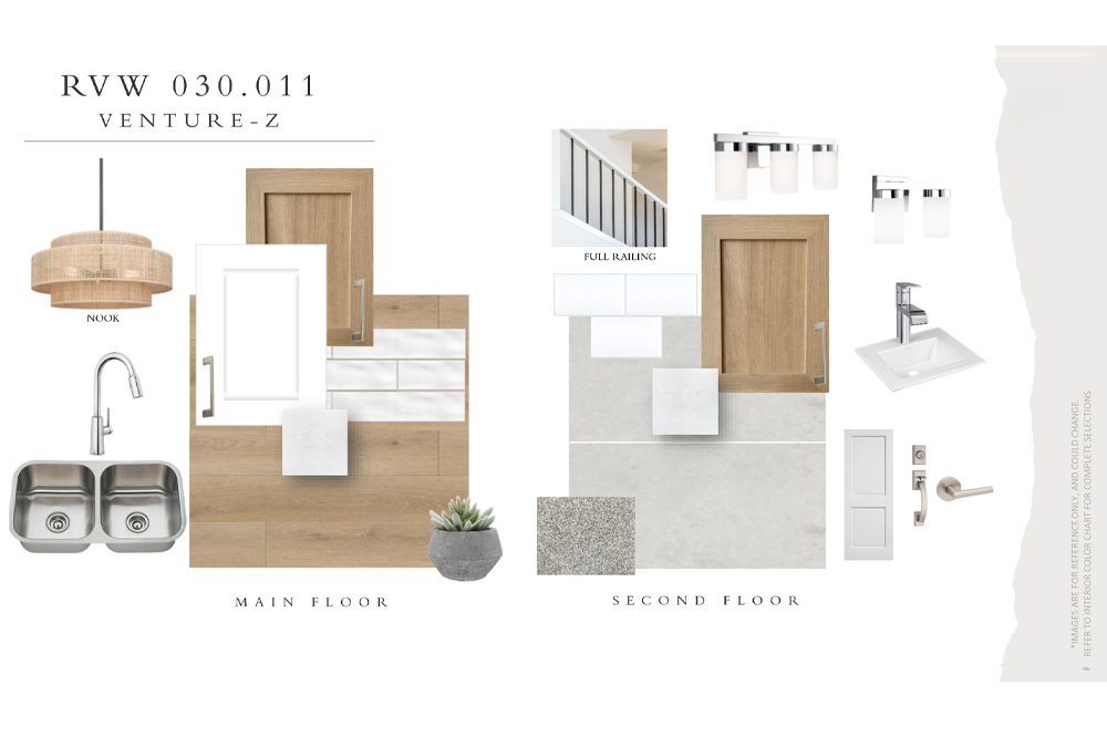 The Venture-z is an 1,839 sq.ft. home with 3 large bedrooms, a bonus room and 2.5 bathrooms. The main floor has a 9 ft. ceilings throughout and a private half bathroom tucked out of the way. Enter the kitchen with an island and extending eating bar, and a walk-through pantry that leads to the mudroom with storage and attached, double car garage. A laundry room with a linen storage and countertops with upper cabinet storage sits on the upper floor alongside three bedrooms and a central bonus room. The Primary bedroom has a walk-in closet with a window for additional light and ensuite with double sinks. Options include a 4th bedroom, pet wash and basement development.